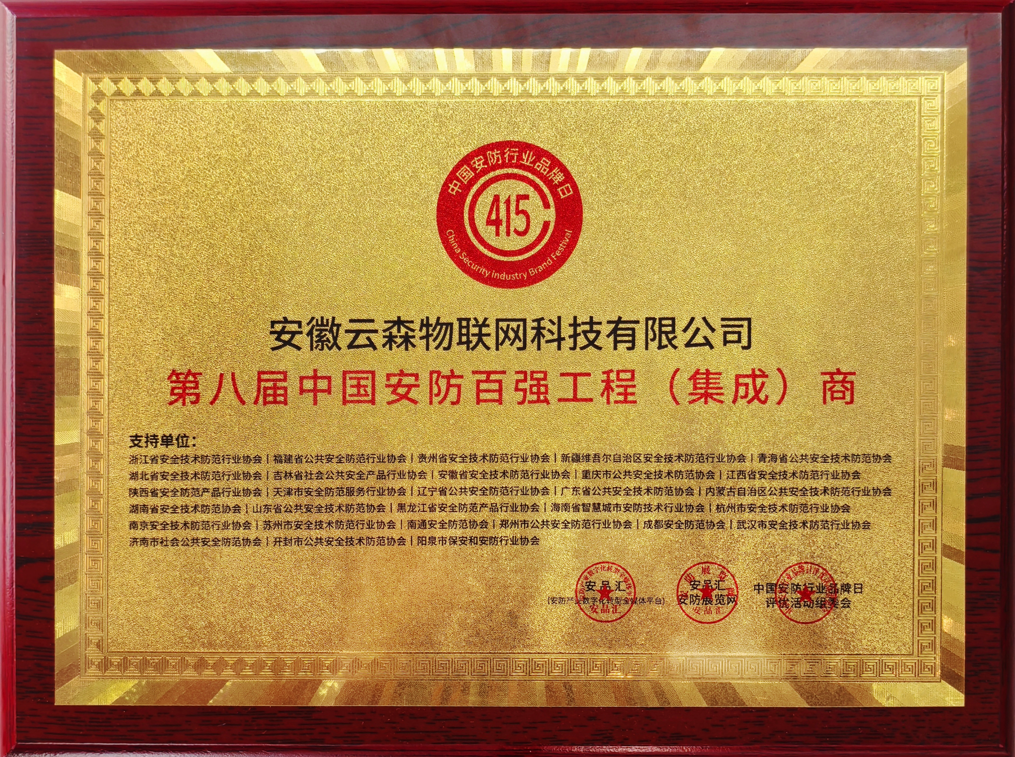 恭喜!安徽云森物聯(lián)網(wǎng)科技有限公司在安防領域再傳捷報,一舉斬獲“第八屆中國安...